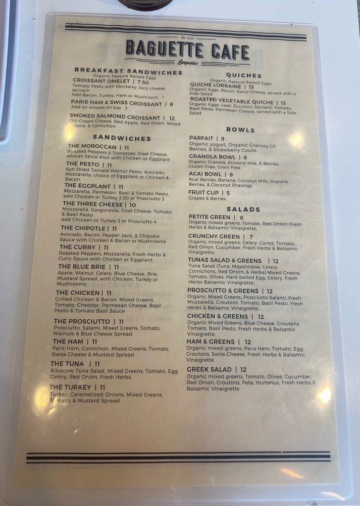 Baguette Cafe is a French-inspired gem located in Las Vegas, NV, offering a delightful array of breakfast and brunch options. Their menu boasts mouthwatering breakfast sandwiches like the Blue Cheese Croissant Omelet and the Smoked Salmon Croissant. Additionally, their Avocado Toast and Egg Sundried Tomato Omelet & Toast are perfect choices for a fulfilling meal. The cafe also serves savory quiches like the Quiche Lorraine and Vegetable Quiche, baked to perfection with quality ingredients.