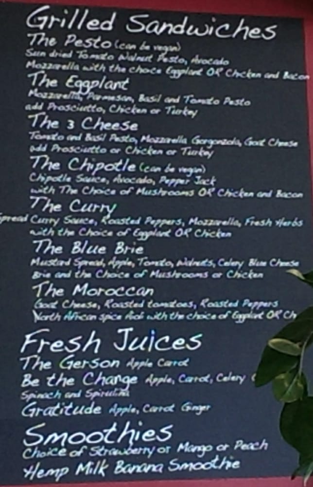 Roasted Eggplant, Tomato Basil Pesto, Almond Milk Ricotta, Spinach and Caramelized Onions.Add Chips 2 or Roasted Potatoes 3 or Soup 5